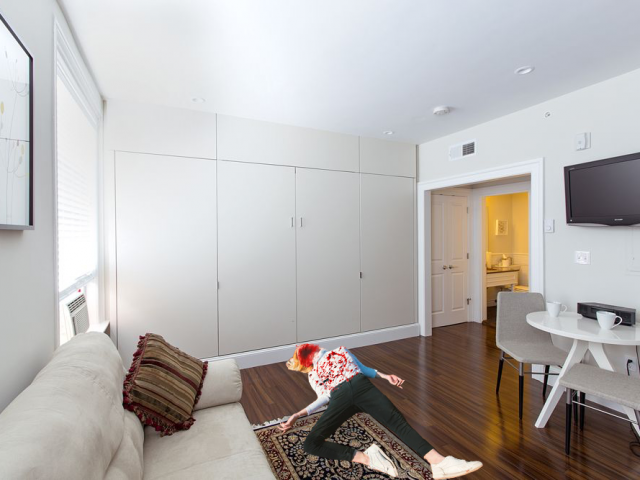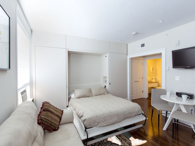 Best apartment in Chelsea for someone new to the city. Small, lots of closet space, air conditioning unit. Newly renovated. Previous tenant was flattened under Murphy bed, killing her instantly, so be careful. Police suspect ex-boyfriend killed her in a crime of passion, but finding his fingerprints on the bed isn’t a huge surprise ;). New hardwood floors and high ceilings. Spacious kitchen area with lots of counter space. Blood stains mostly gone!